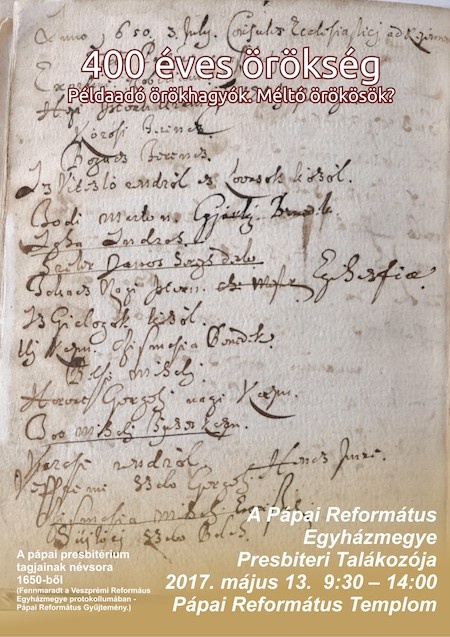 A Pápai Református Egyházmegye a következő programokat szervezi ebben az esztendőben: