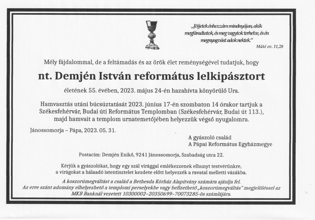 Örömmel adjuk hírül és tesszük közzé, hogy megjelent egyházmegyénk hitéleti lapjának ezévi legújabb lapszáma, mely összevont kiadás, a 3. és 4. szám együttesen jelent meg. tovább