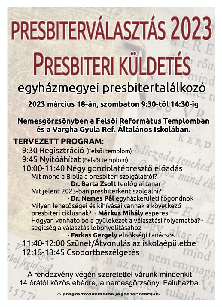 Egyházmegyénkben évek óta szokás, hogy egy kis gyülekezetet anyagi támogatásban részesít az egyházmegye közössége. Erre a célra egy őszi vasárnap perselypénzes adakozását ajánlják fel gyülekezeteink. Ebben az esztendőben a támogatás céljául a Nagyacsádi Református Egyházközség került kisorsolásra.