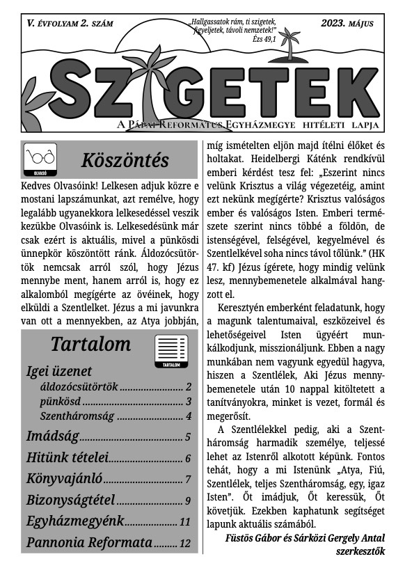 Megjelent egyházmegyei hitéleti lapunk pünkösdi ünnepköri száma. A lap digitálisan érhető el kétféle feormátumban. Az egyik arra szolgál, hogy képernyőn (vagy akár telefonon, tableten) lehessen olvasni, a másik pedig arra, hogy ki lehessen nyomtatni (kétoldalasan), és összehajtva a lapokat kézbe lehessen venni, tovább lehessen adni. Megtalálható itt: http://www.papaiem.refdunantul.hu/hir/mutat/23964/