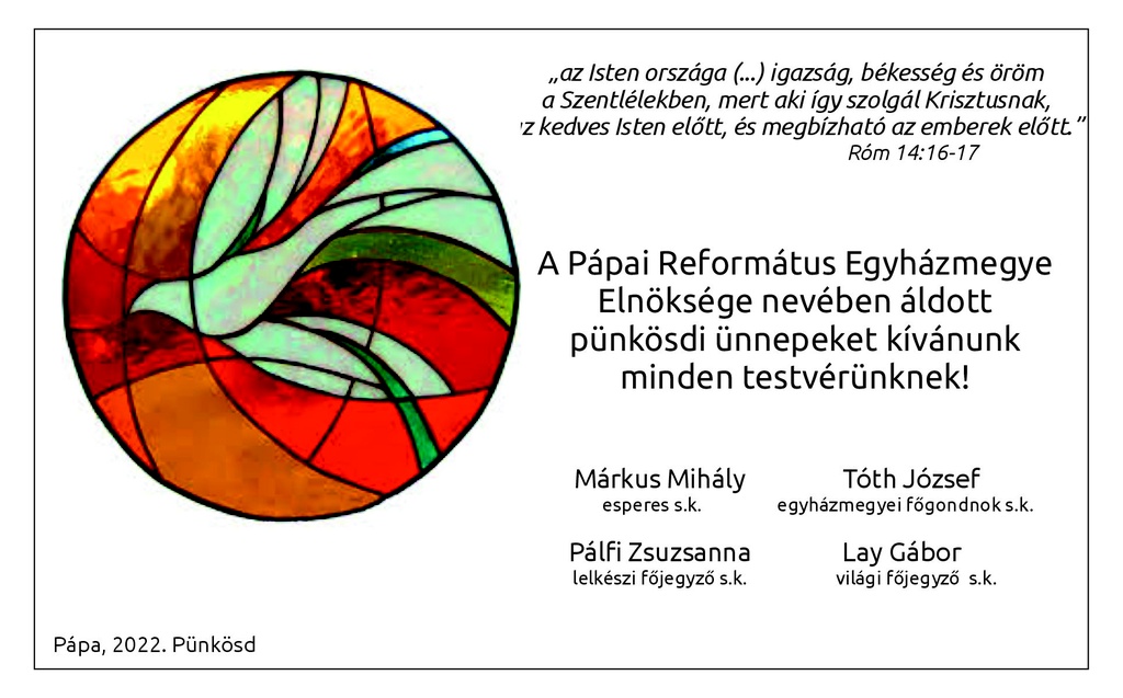 Pünkösd ünnepéhez érkeztünk, és amellett, hogy sok gyülekezetben konfirmációra készültünk, vagy az elmúlt héten éltük át, hálát adunk Isten Szentlelkéért, mely nekünk is adatott. Szokás mondani, hogy a kertésznek a kertje, a fodrásznak a haja, tetőfedőnek a házteteje... elhanyagolt, mert mindig a másét gondozza, építi. A sajátjára már kevés idő és energia marad. Vajon ez a lelkész lelkére is igaz? Bizony, aki segítő hivatást választ, tapasztalja, hogy csak úgy tud segíteni, embereket gyógyítani, ha maga is elég gyógyult hozzá. Ezzel a lelkész is találkozik. Csak úgy tud adni, Istenről beszélni, ha ő maga is feltöltődött az isteni lélekkel. Épp ezért, a Pápai Református Egyházmegye lelkészei pünkösd előtt pár nappal a Zirci Református Egyházközség templomában összegyűltek, hogy úrvacsorai közösségben átéljék az Istenhez tartozás erejét. tovább