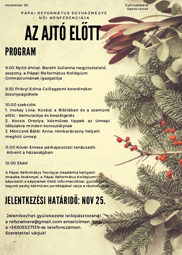 Az idei esztendőben egyházmegyénk a kisgyülekezetek közül a szerecsenyit támogatja. Minden gyülekezet a november 17-i perselypénz-gyűjtését e kisgyülekezet javára ajánlja fel. Alább a gyülekezetről olvashatnak egy rövid leírást: tovább