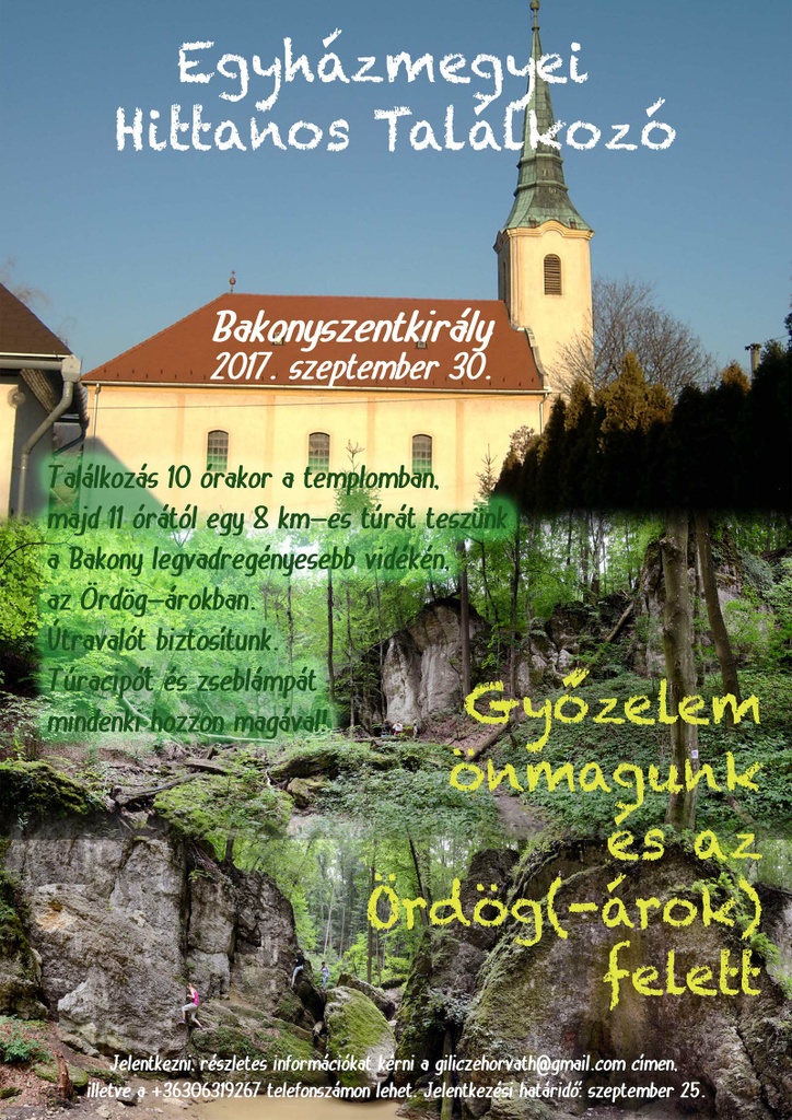 Az alkalom 10 órakor kezdődik a templomban, majd 11 órától túrázás következik a Bakony legvadregényesebb vidékén, az Ördög-árokban.