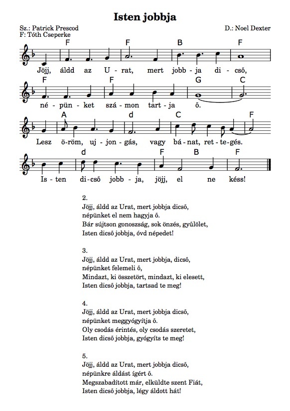 A következő énekről van szó (ha valakinek ez „magas”, eltérő hangnemekben is megtalálható a mellékletben):