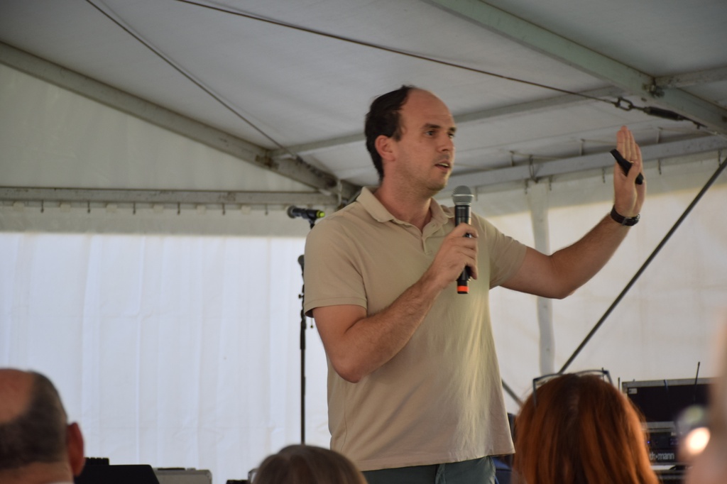 A napot közös dicsőítéssel zártuk a pápai gyülekezet zenekarának vezetésével. Már jócskán az ebéden túl, jó pár süteményt és ropogtatni valót elmajszolva újra megtapasztaltuk a közös éneklés lelket melengető szépségét. A sok ismerős arc, csillogó tekintet és ritmusra ringatózó láb képe mellett igazán három kép hagyott bennem mély nyomot. Az első, ahogy Márkus Mihály esperes úr ült a szintetizátor mögött. A szív és lélek hiteles hangját hallgattuk általa, ahol megszűnt a hierarchiabeli különbség és maradt előttünk a hiteles ember, kinek meggyőződése, hogy Isten nélkül minden hiábavaló. A második egy a gyermekét körbe pörgető apa képe. Míg szólt az esti ének, a fiát szorosan fogta énekelt neki és közben körbe-körbe pörögtek. A gyermek kacagott, nem félt. Lehetünk így mi is a mi Istenünk karjaiban. Bizalommal és örömmel még akkor is, ha néha szédítő a magasság vagy mélység. Van Megtartónk. A harmadik egy édesanya képe. Elfáradva a nap terhétől, az apró gyermekekkel a földön ülve hallgatták a pápai gyülekezet zenekarát. Szerető tekintettel énekelt a gyermekeinek. Az Úr velünk volt a napsütötte szellős alkonyatkor is, hogy ismét feltegye a kérdést: