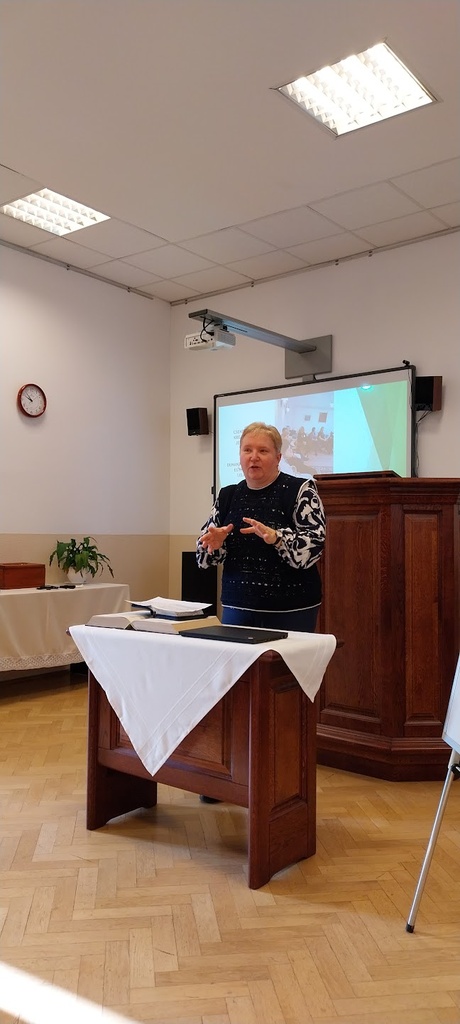 Ezt követően Lenkeyné Teleki Mária az Oktatási Szolgálat lelkésze tájékoztatta a jelenlévőket, aki a hittanoktatók lelki, pasztorális támogatásával van megbízva. A lelkésznő hittel, hálaadással vallja, hogy e megbízás mögött Isten elhívása áll. Megosztotta az elmúlt évek tapasztalatait a megyei hittanoktatói munkaközösségek megalakulásáról, működéséről és áldásairól. Ezek a munkaközösségek a Katechetikai Támogató Szolgálatok keretén belül működnek, melyeknek összefogását, koordinálását végzi a lelkésznő. Nagyon hálás, hogy a Dunamelléki Református Egyházkerület után a Dunántúli Egyházkerület megyéiben is életre keltek ezek a támogató közösségek. Nagy hálával gondol az elmúlt évek találkozásaira a Somogyi, Veszprémi, Mezőföldi, Tatai Egyházmegyékben. Sok elkötelezett, hűséges hittanoktatóval lehetett találkozása a közösségekben. Előadása rávilágított arra is, hogy az Oktatási Szolgálat nemcsak adminisztrációs feladatokat lát el a hittanoktatók munkáltatójaként, hanem nagy hangsúlyt helyez a hittanoktatók, lelki háttértámogatására is. Legyen szó lelki, imádságos elvonulásokról, lelki napokról, szupervízióról, egyéni lelkigondozásról. Végezetül ismertette a 2026-os évre tervezett lelki- és szakmai napok tartalmát, időpontjait, helyszíneit.